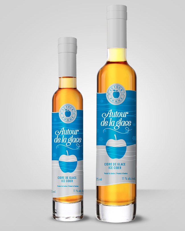 Création d'étiquette pour le nouveau verger «Autour de la pomme» en Pantone métallique.