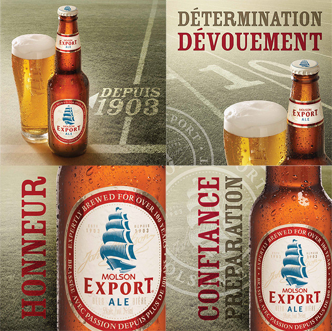 Création de visuels Molson Export en partenariat avec les Alouettes de Montréal au stade Percival Molson. Conception et montage photo