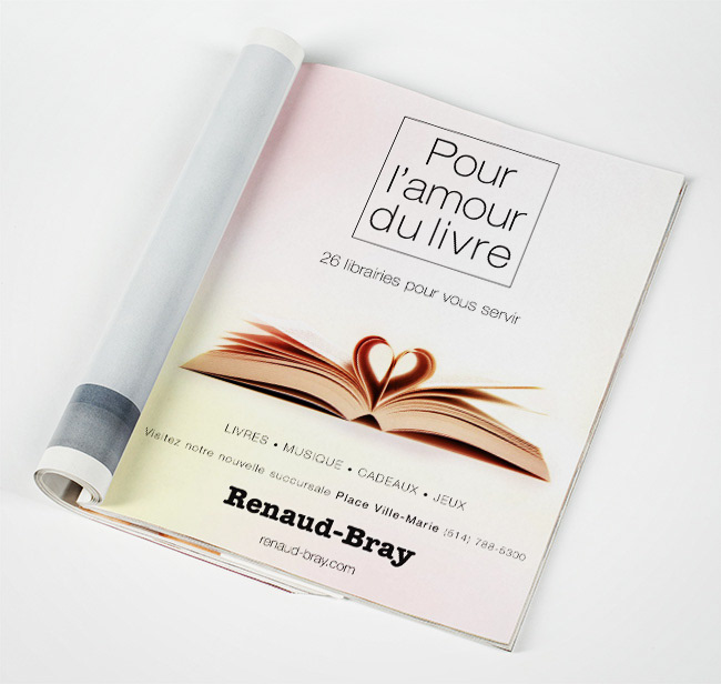 Publicité de magazine pour le salon du livre de Montréal. Conception, photoshoot et montage
